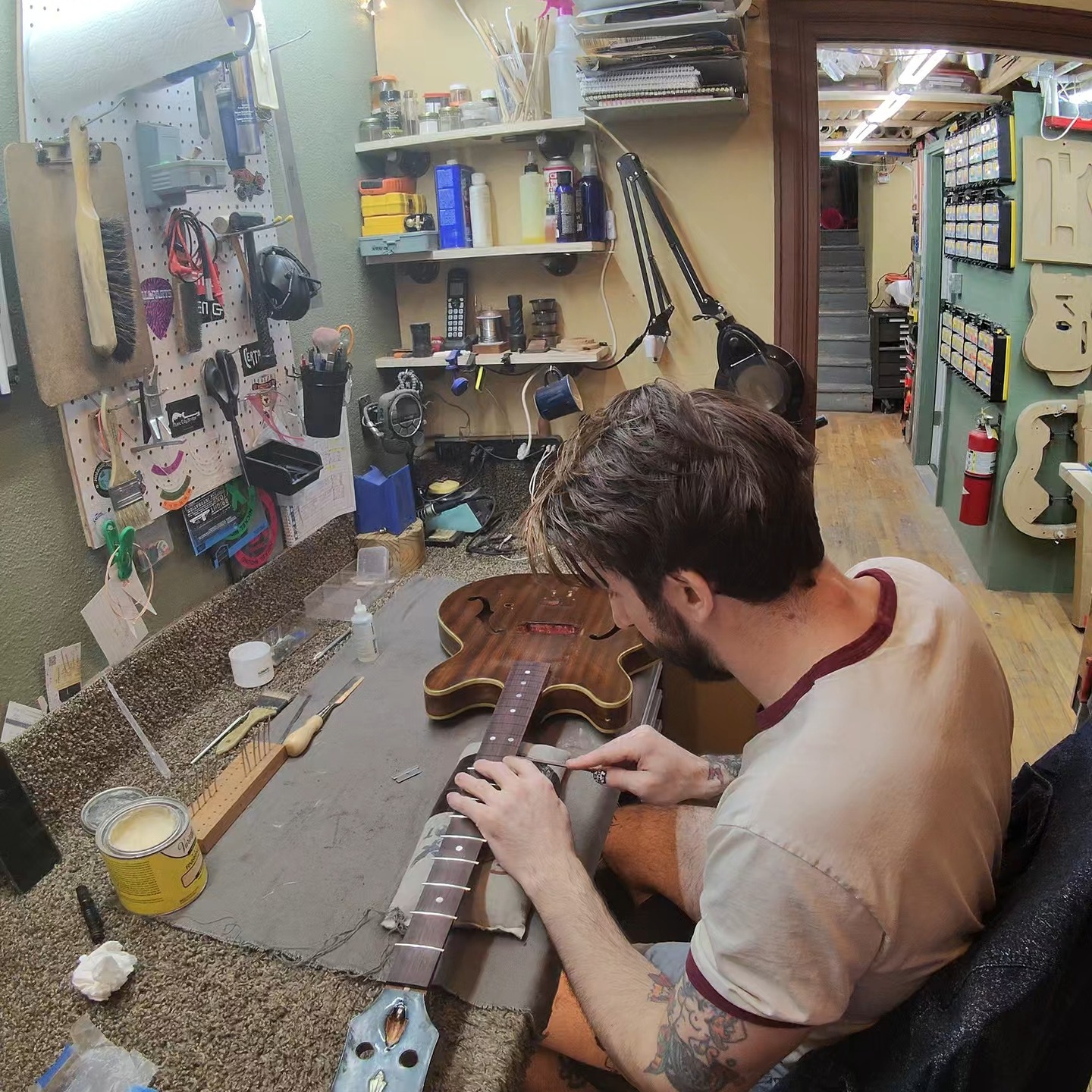 Whether you need a quick setup on your acoustic, a complex restoration on a vintage mandolin, or you're ready to commission a one-of-a-kind handmade guitar, our team of experienced luthiers is here to help.
